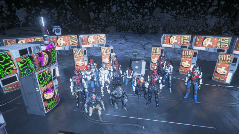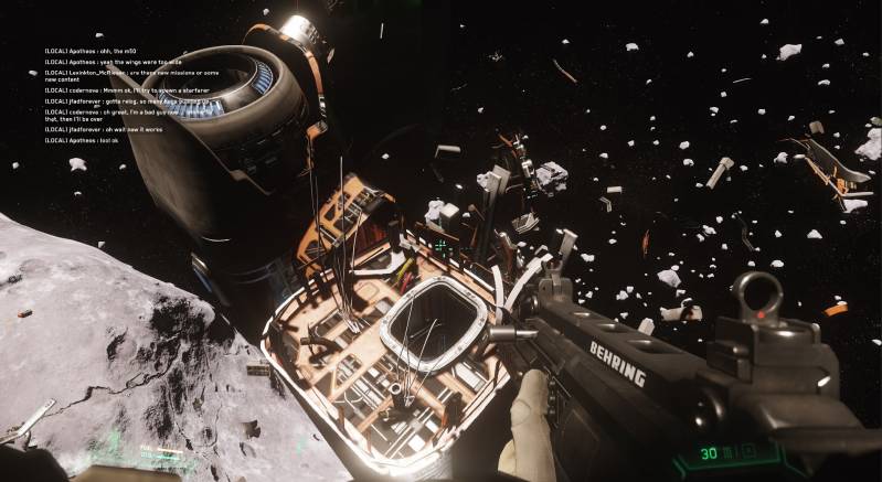 Then beautiful team play emerged and we found a way to work together and find the location where the Henge was hidden on an astroid. We celebrated and everybody went off ship to visit The Henge themselves! As promised we offered A greyCat buggy to the Henge, took some pictures and. then called it a day. We had a drink in the mess hall, and officially named her "The Brandenburg".